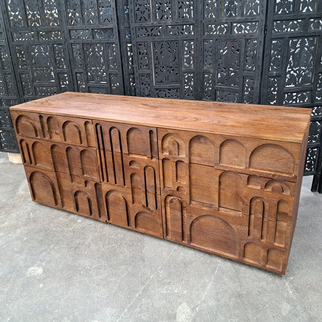 Merced Brutalist Inspired Nine Drawer Mango Wood Sideboard