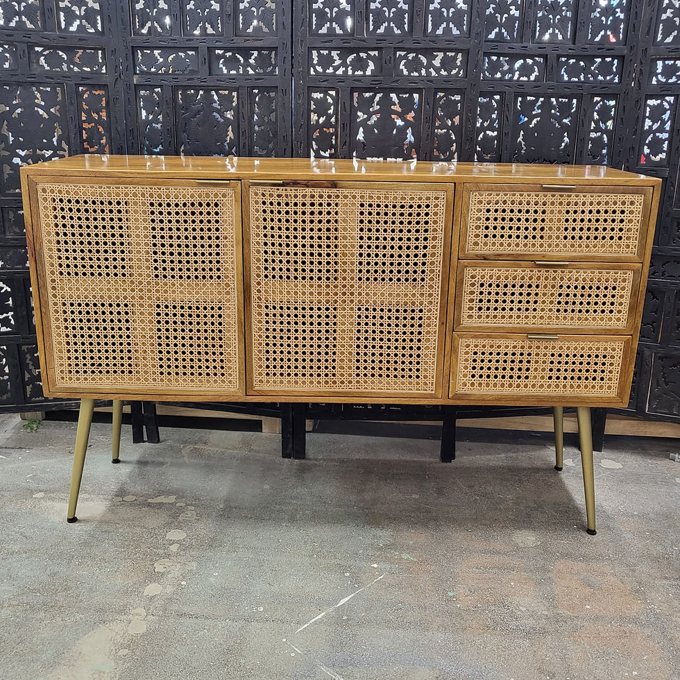 Wallace Two Door Three Drawer Cane And Mango Wood Sideboard