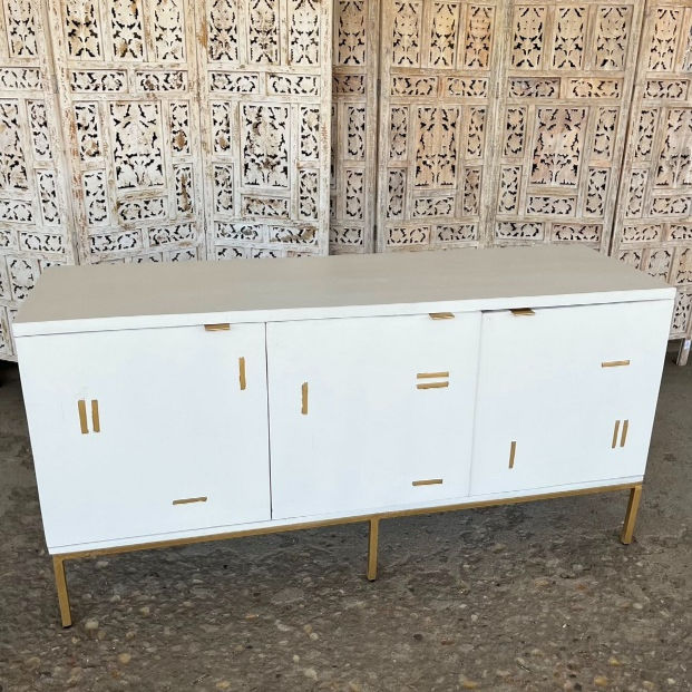 Manushi Single Door Three Drawer Mango Wood Sideboard With Metal Legs