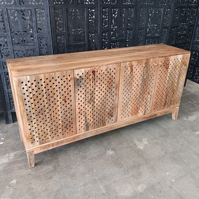 Kunal Four Door Lattice Front Mango Wood and Mirror Sideboard